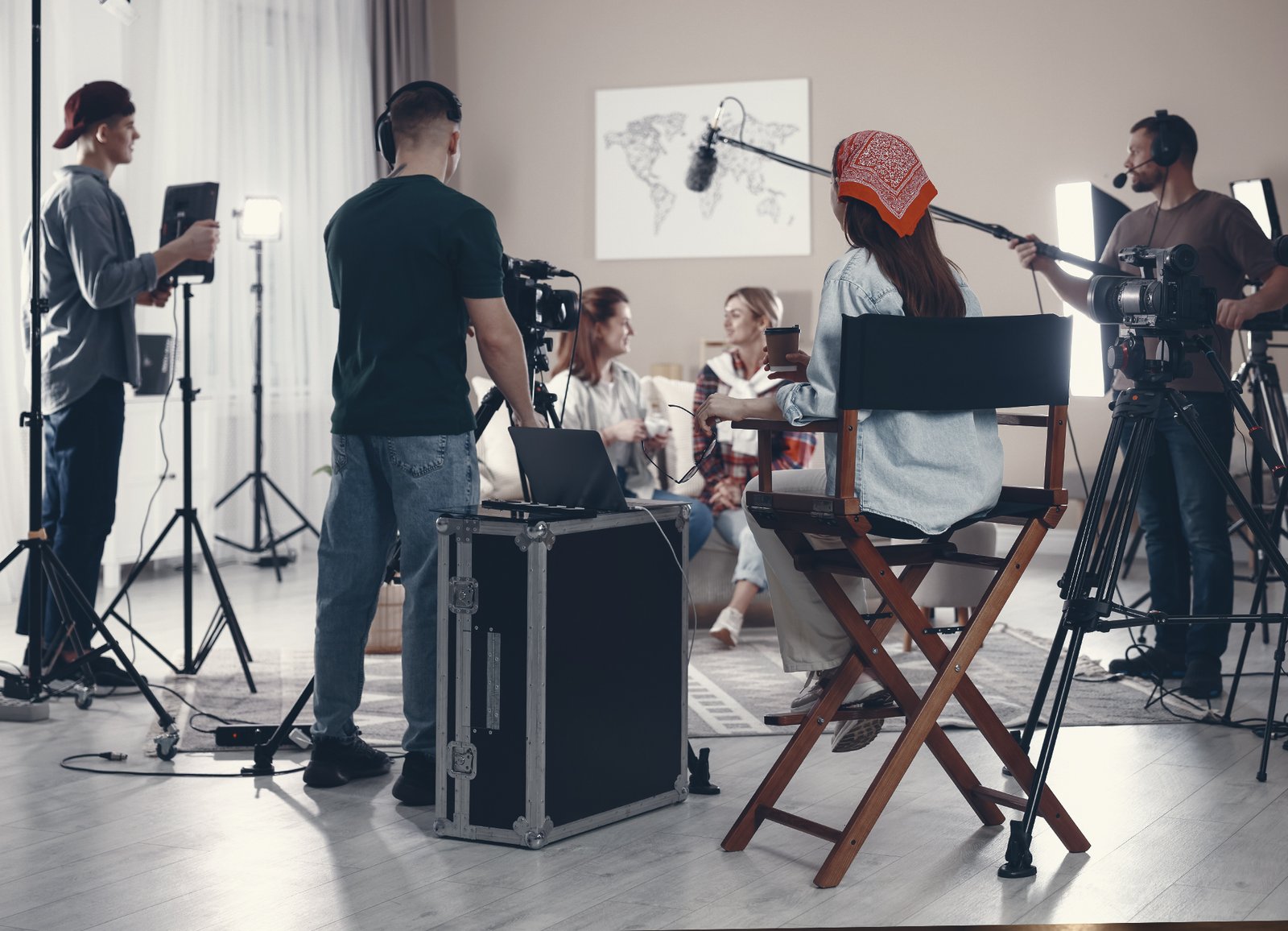 camera on set, creative video production, cinematic angles, behind-the-scenes vibe, dramatic lighting.